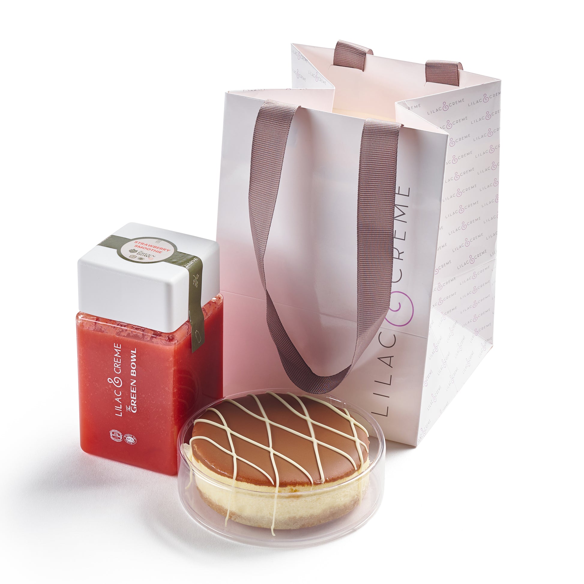 Treat your loved ones to the ultimate Mishloach Manos pairing. This perfectly curated duo brings together the best of both worlds--a rich, velvety Lilac & Creme mini cheesecake and a refreshingly smooth strawberry smoothie made exclusively for us by The Green Bowl, known for their fresh and flavorful treats.